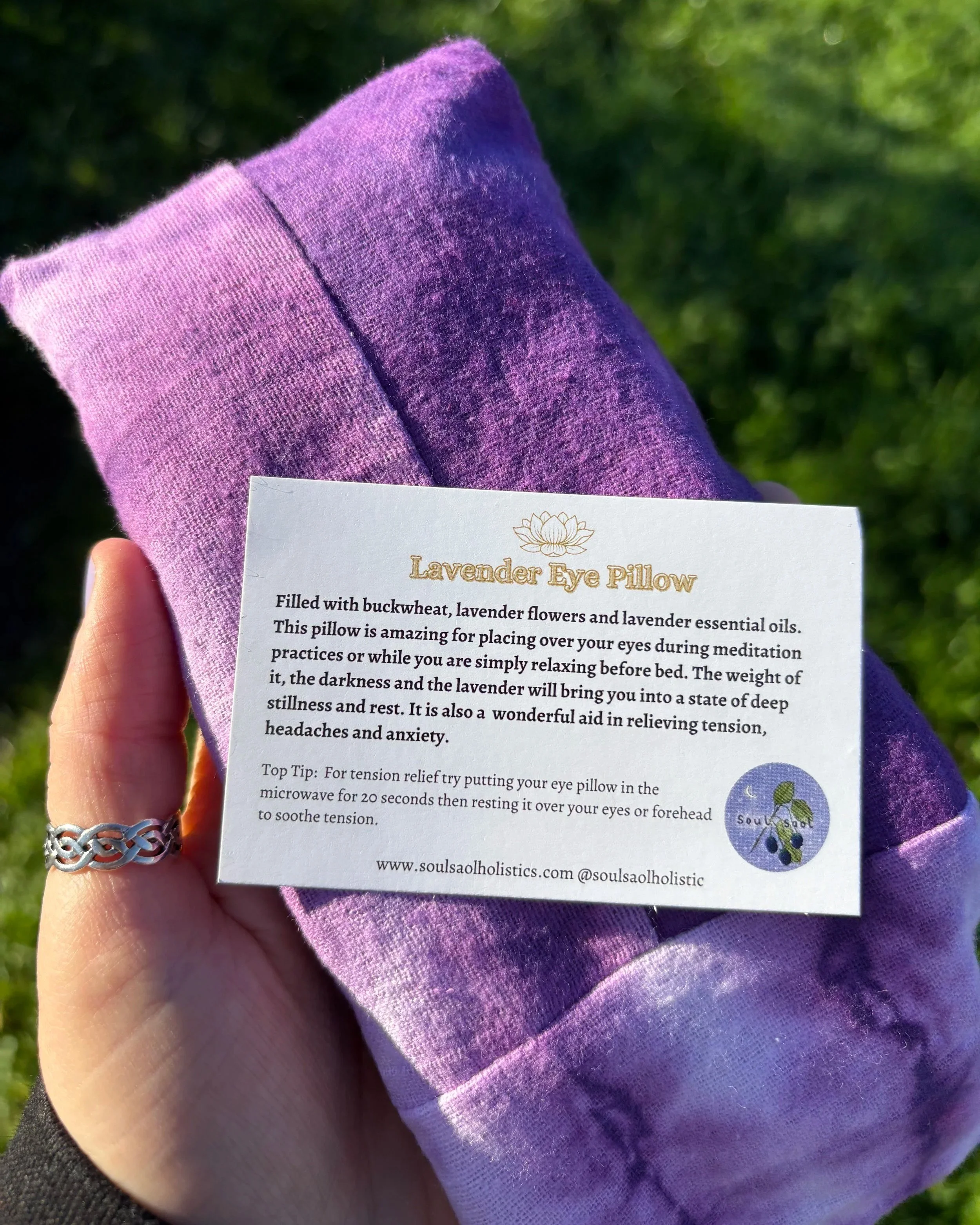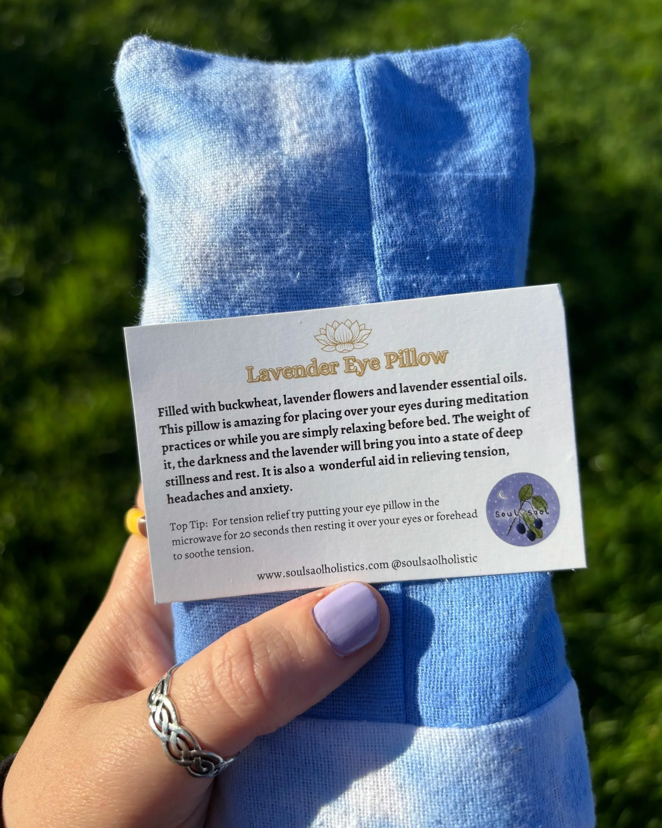 🪻Filled with buckwheat, dried lavender flowers and essential oils. This pillow is amazing for placing over your eyes during meditation practices or while you are simply relaxing before bed. The weight of it, the darkness and the lavender will bring you into a state of stillness and rest.