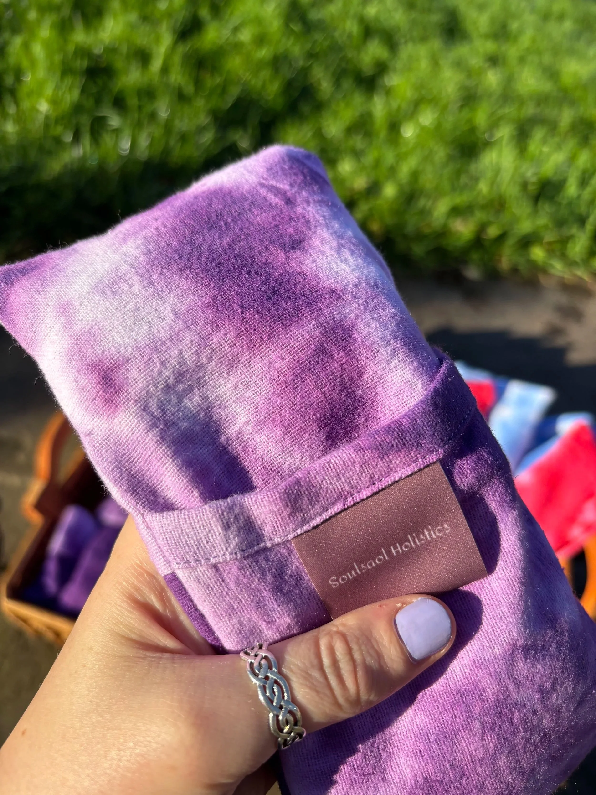 Please note: These eye pillows are handmade and every single one is a unique design. We had so much fun hand dying the fabric and creating them for you. Each one will look completely different so the one you receive will not be identical to the ones in the photos. You can choose a colour scheme, this just means the main colours of your eye pillow will be green or purple. However the ones you receive will be completely unique. We hope it makes you smile.